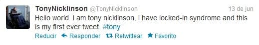 Si quieres seguir a Nicklinson puedes hacerlo en su cuenta de Twitter @TonyNicklinson, o usar el hashtag #tony.